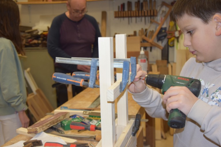 Objectifs de l'atelier : Initiation au travail du bois : Couper, assembler... Connaitre les différents outils et apprendre à les utiliser.