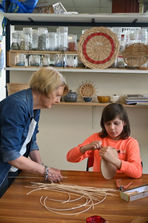Objectifs de l'atelier : Transmettre à des jeunes ce savoir faire et partager le plaisir qu'apporte la pratique de cette activité assez méconnue, avec la réalisation d'objets la plupart du temps à usage concret. La vannerie n'a pas vraiment d'ambition artistique mais plutôt celle de réaliser des objets à usage quotidien (corbeilles, plateaux, paniers, etc.)